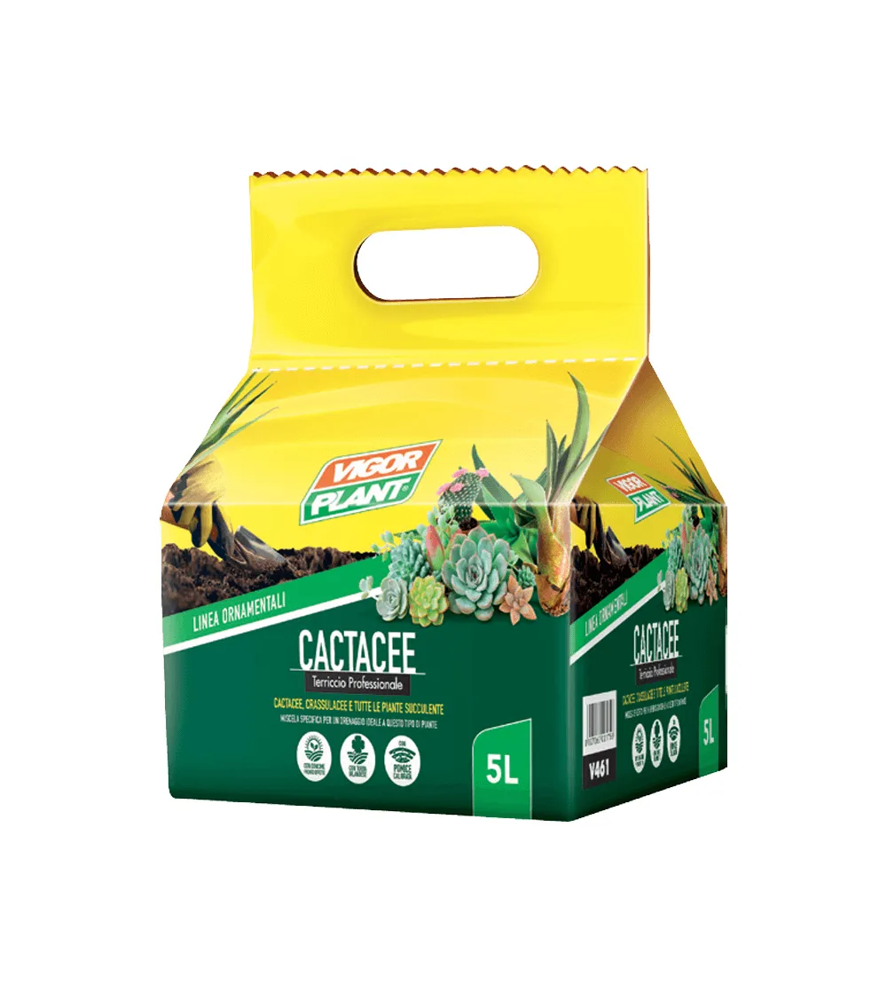 Il Terriccio per Cactacee è fertile e drenante, ideale per piante grasse e succulente che non gradiscono ristagni idrici. La sua composizione consente infatti di trattenere temporaneamente quantità importanti di acqua per consentire alla pianta di fare riserva ma, al tempo stesso, deve essere particolarmente drenato per evitare ristagni idrici che porterebbero alla marcescenza delle radici e successivamente della parte epigea. L’aggiunta di sabbia di pomice 0-3 mm garantisce inoltre una macroporosità ottimale. Generalmente le cactacee hanno bisogno di temperature elevate anche durante il periodo invernale e crescono bene in pieno sole. Se la temperatura all’esterno non scende sotto i 5-6 gradi possono essere tranquillamente coltivate all’esterno.